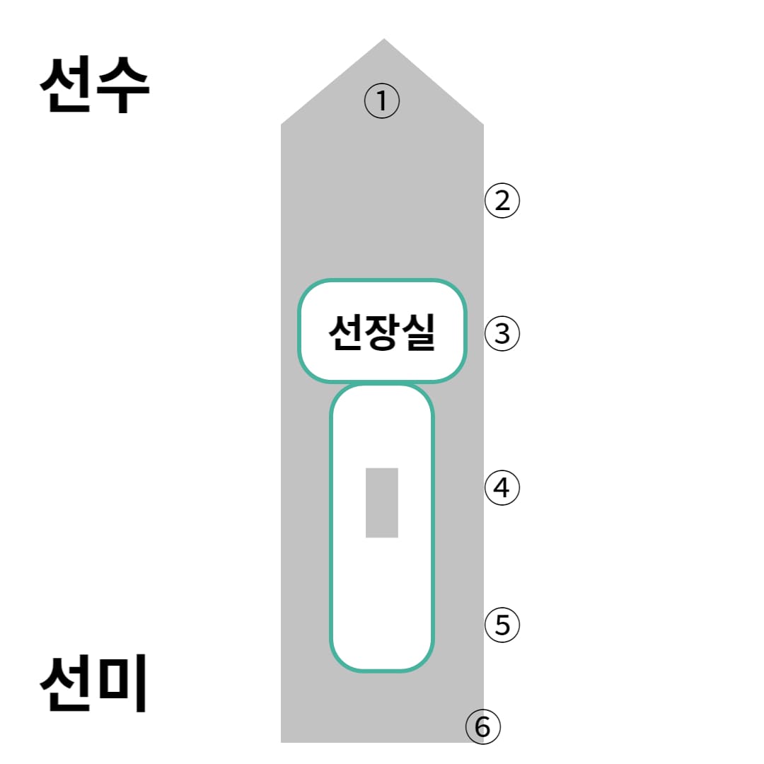 ② 이 위치는 왼쪽, 반대편은 오른쪽이 공간이 있는 편이고 3, 4, 5번보다는 뒤쪽에 짐을 놔둘 수 있는 공간이나 가끔 테이블이 있는 배들이 있어 공간 활용에 아주 좋습니다. 이 자리 역시 선수보다는 아니지만 포지션이 살짝 높고 화장실과 꽤 거리가 있습니다.